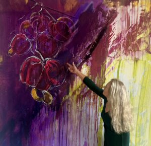 Ik maak het liefst een groot abstract schilderij, vooral een groot schilderij 2 meter lang. De afmetingen van mijn grote abstracte schilderijen zijn tot 200 cm bij 250 cm.
